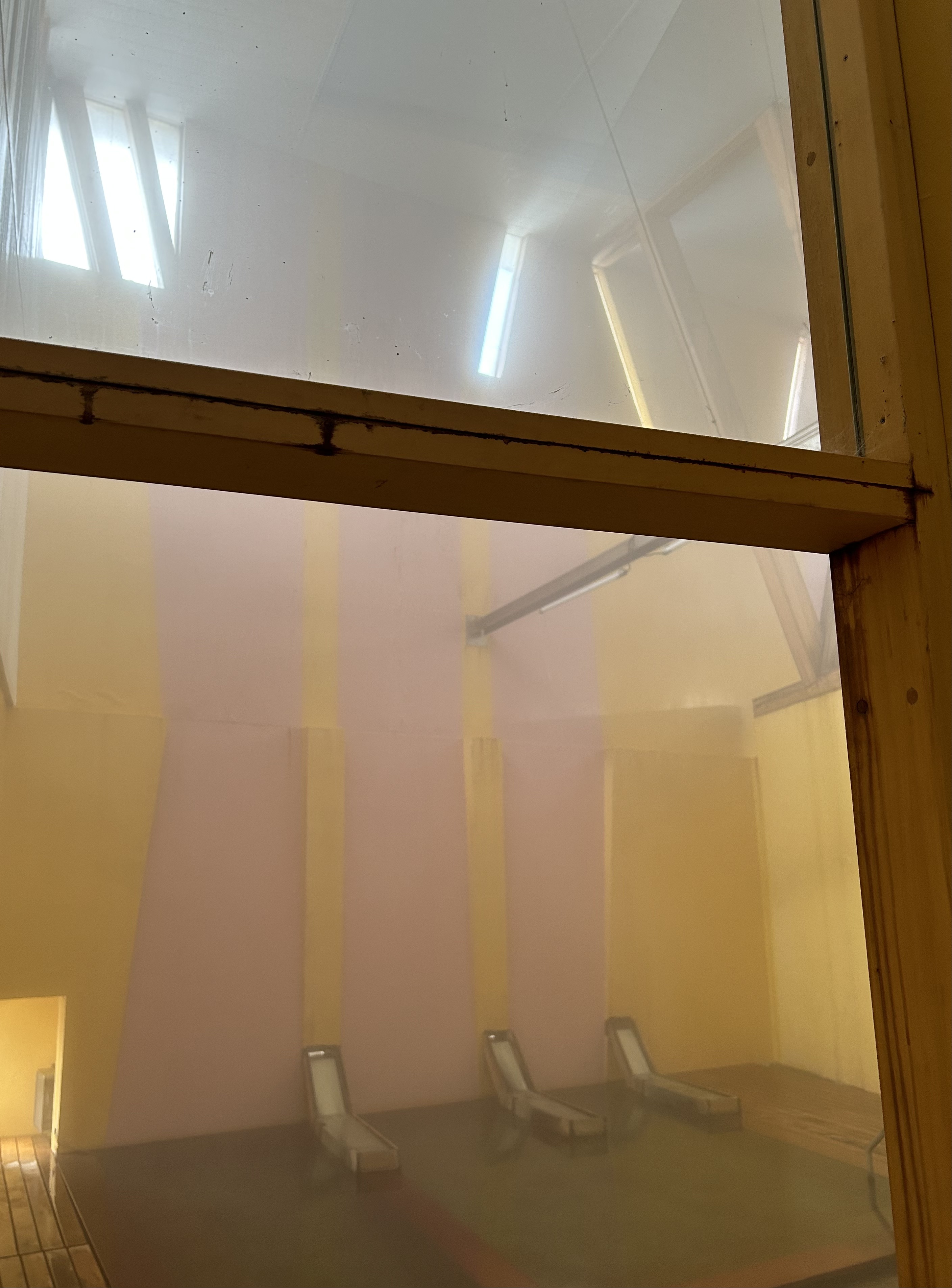 鳴子温泉まだまだ寒い。早稲田桟敷湯、天井が高い浴室は湯気がいっぱい、乾燥しているので鼻呼吸を!