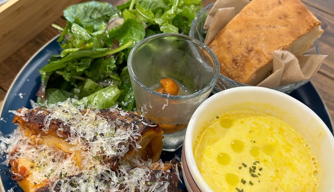 わたしのお気に入りランチ:『ラザニア』を、食後にコーヒーとデザートに「カラメルプリン・クリーム添えて」